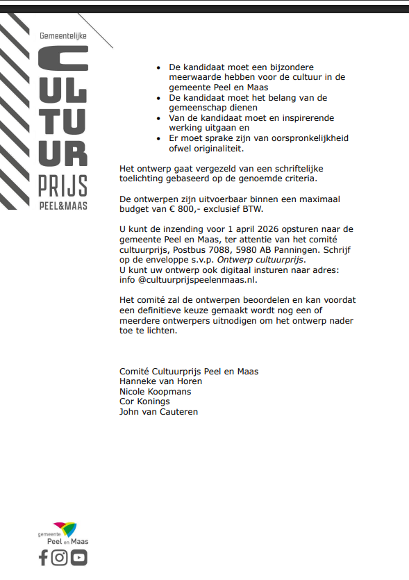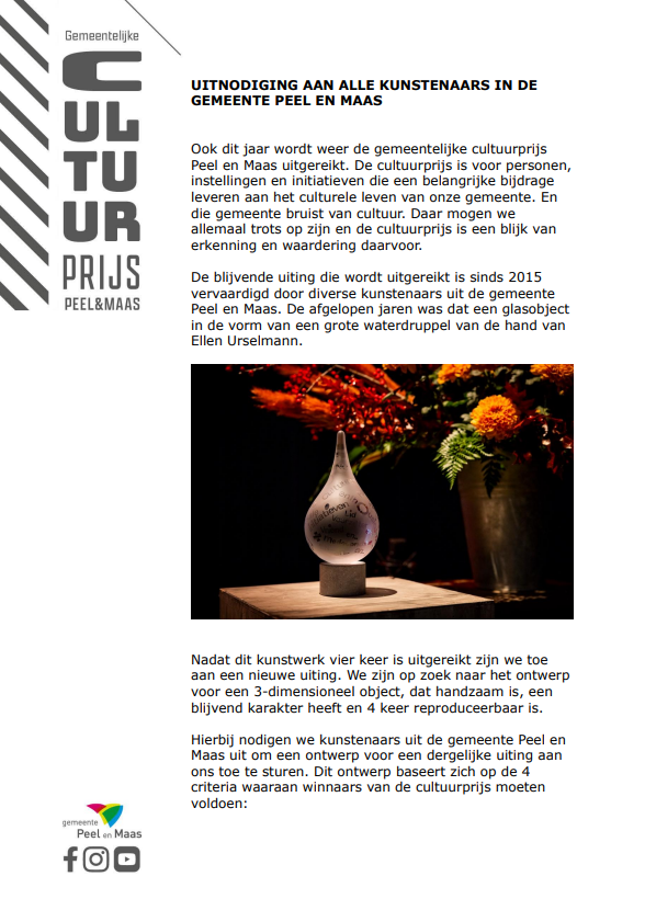 De cultuurprijs is op zoek naar een nieuw kunstwerk om de komende 4 jaar aan de winnaars uit te reiken.