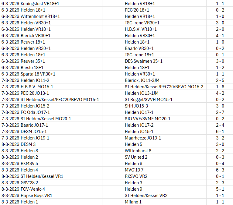 de 16 en wederom krijgt Helden (verdiend) een penalty. Bij de afwezigheid van onze vaste