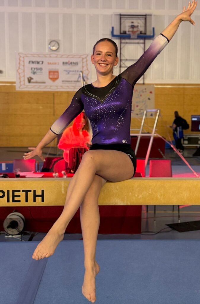 Gielke mocht in de laatste wedstrijd van de dag turnen. Ook Gielke had er enorm veel zin in, maar had toch wel een beetje in haar hoofd als het goed zou gaan ze wellicht een plekje op het NK zou kunnen bemachtigen. Ze begon super sterk op brug en wist dit de gehele wedstrijd vol te houden! Na ieder toestel ging ze even spieken waar ze ergens stond in de ranking, telkens rond plek 10. Ze eindigde op sprong met een knaller van een half in anderhalf uit en is uiteindelijk 4e geworden. Super knap! Door deze 4e plaats heeft Gielke zich weten te plaatsen voor de NK finale volgende week zaterdag 18 april in Waalwijk!